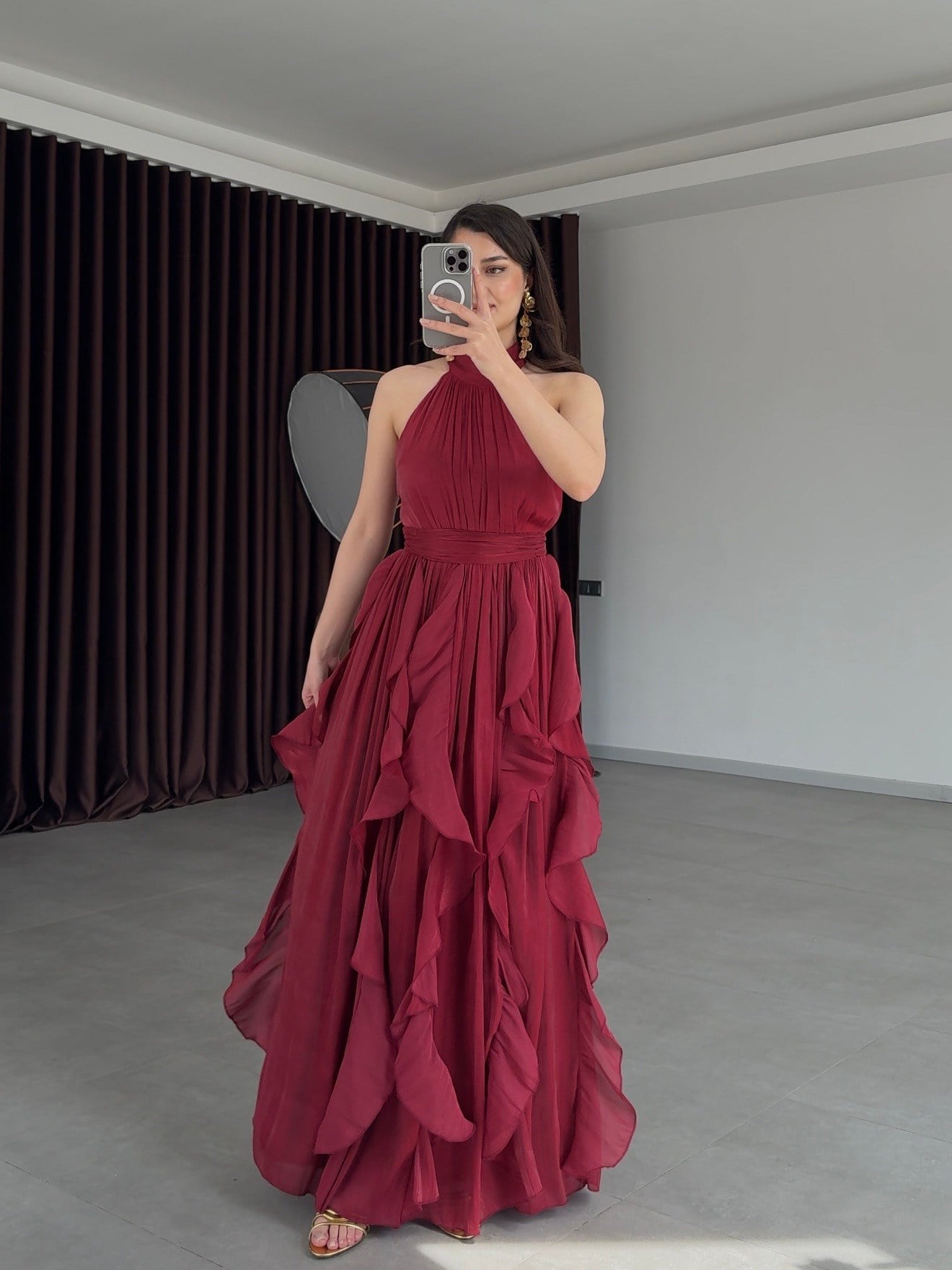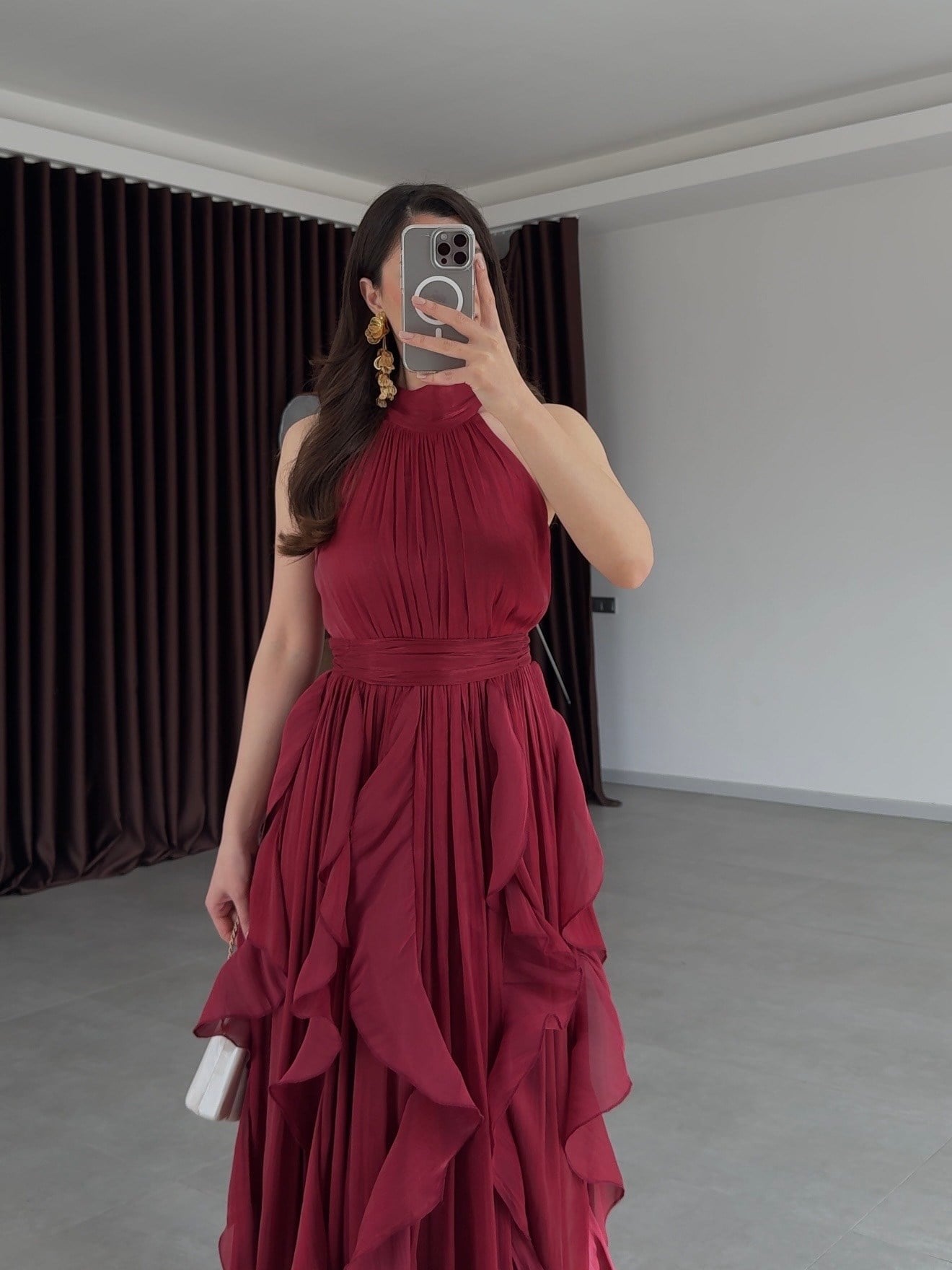 Anewsta Volanlı Elbise- Lacivert Anewsta Volanlı Elbise- Bebe Mavi Anewsta Volanlı Elbise- Bordo Anewsta Volanlı Elbise- Pembe