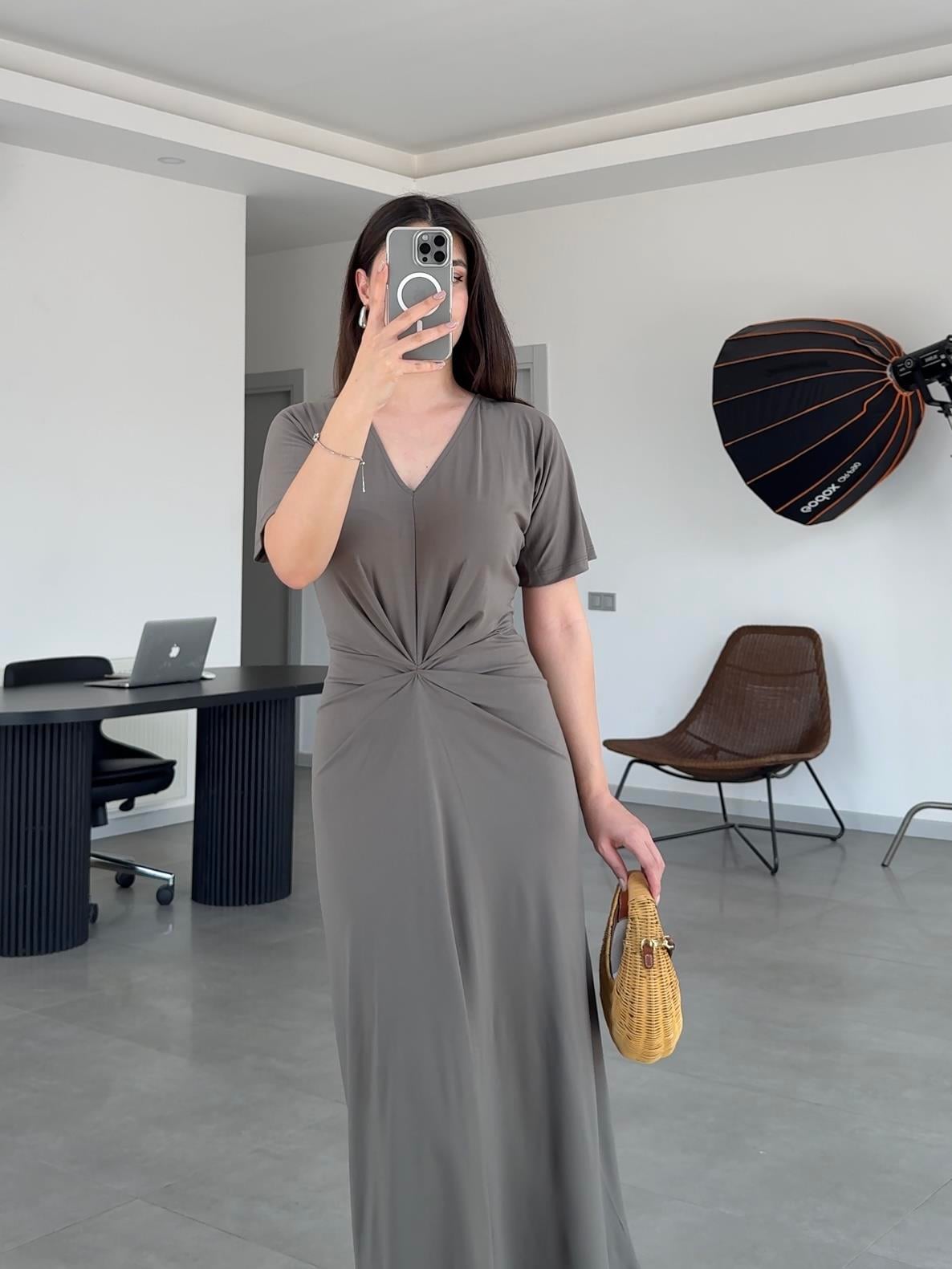 DÜĞÜM DETAYLI MODAL ELBİSE- Haki