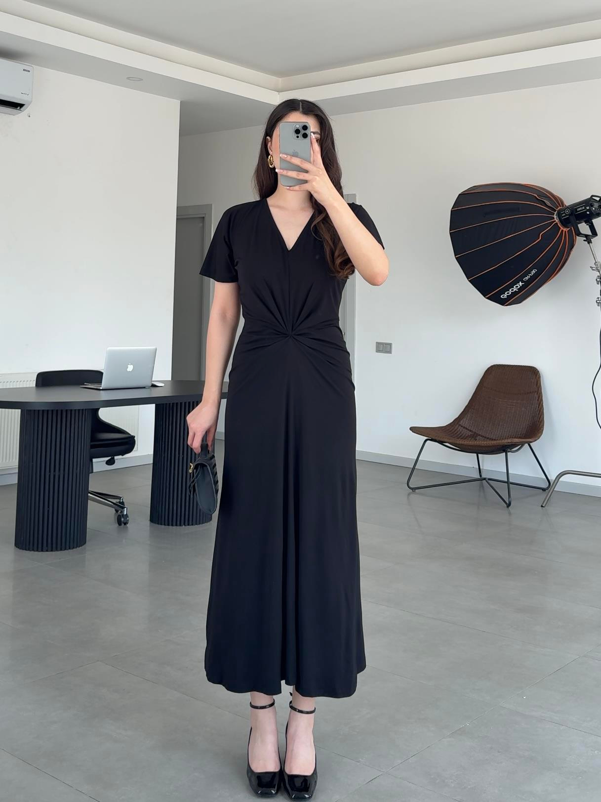 DÜĞÜM DETAYLI MODAL ELBİSE- Siyah