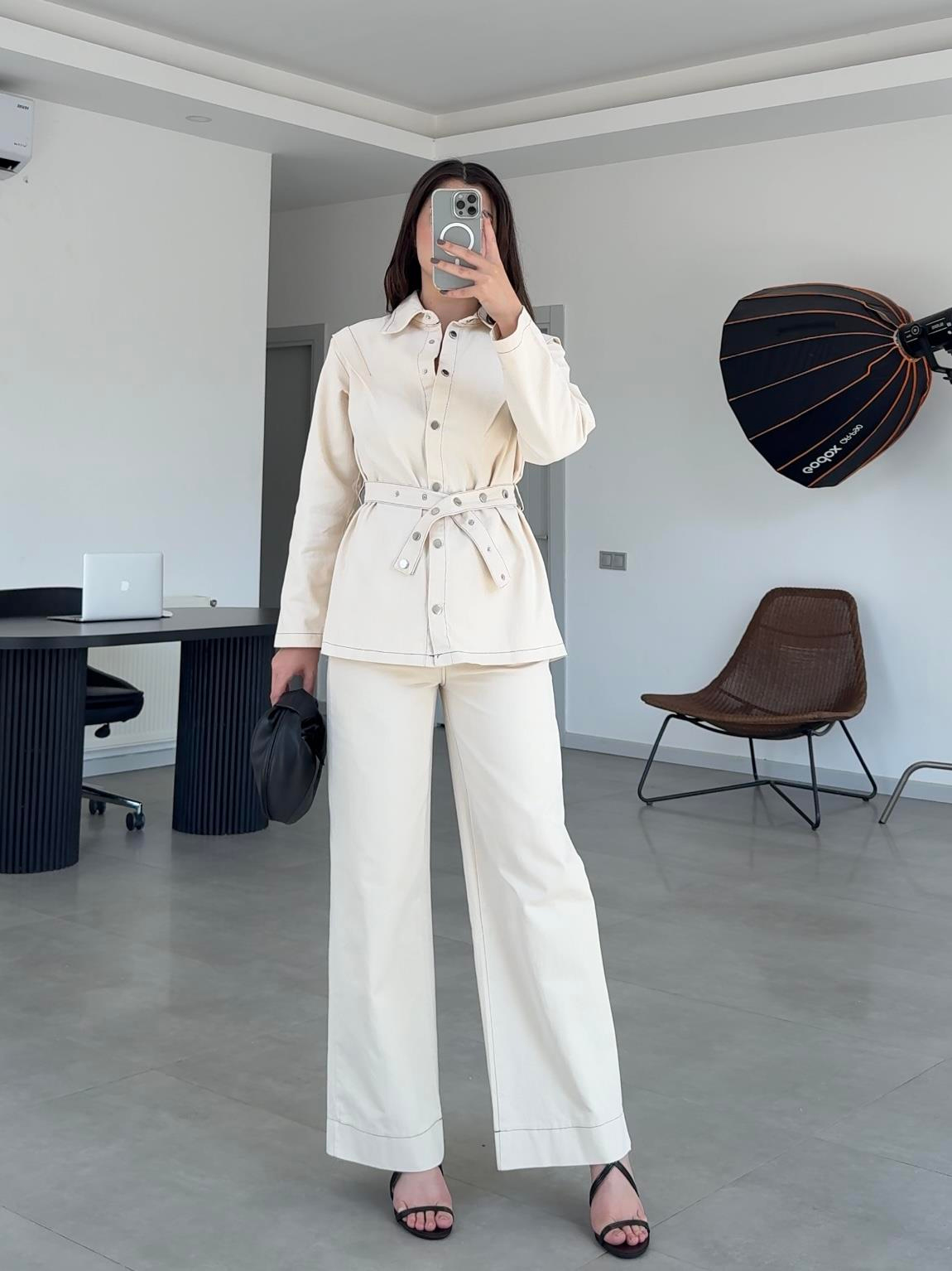 EKRU DENİM CEKET/PANTOLON TAKIM