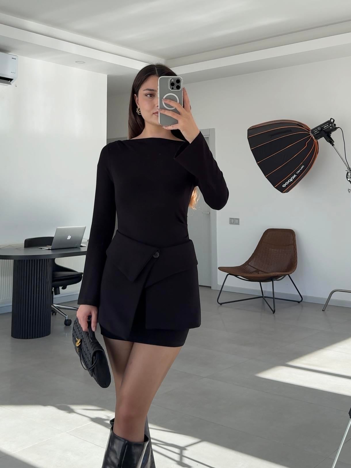 UZUN KOLLU, GENİŞ YAKA, MİNİ ELBİSE