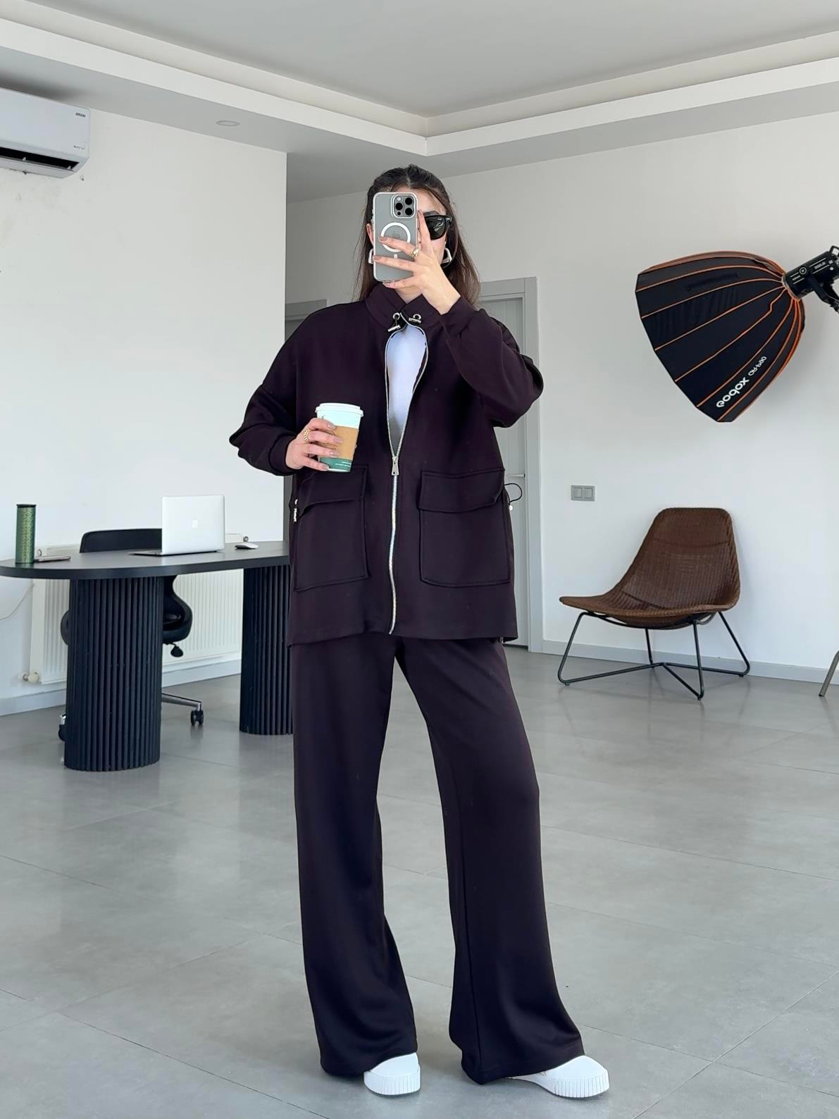 Zamansız şıklığı ve modern çizgisiyle öne çıkan bu ikili takım, minimalist tasarımıyla sofistike bir stil sunuyor. Bel büzgülü detayıyla belinizi vurgulayan ceket formundaki üst parça, geniş paça pantolon ile kusursuz bir uyum yakalıyor. Günlük hayatta rahatlıkla tercih edilebileceği gibi, ofis stilinden özel davetlere kadar birçok alanda kullanabileceğiniz şık ve konforlu bir seçimdir.