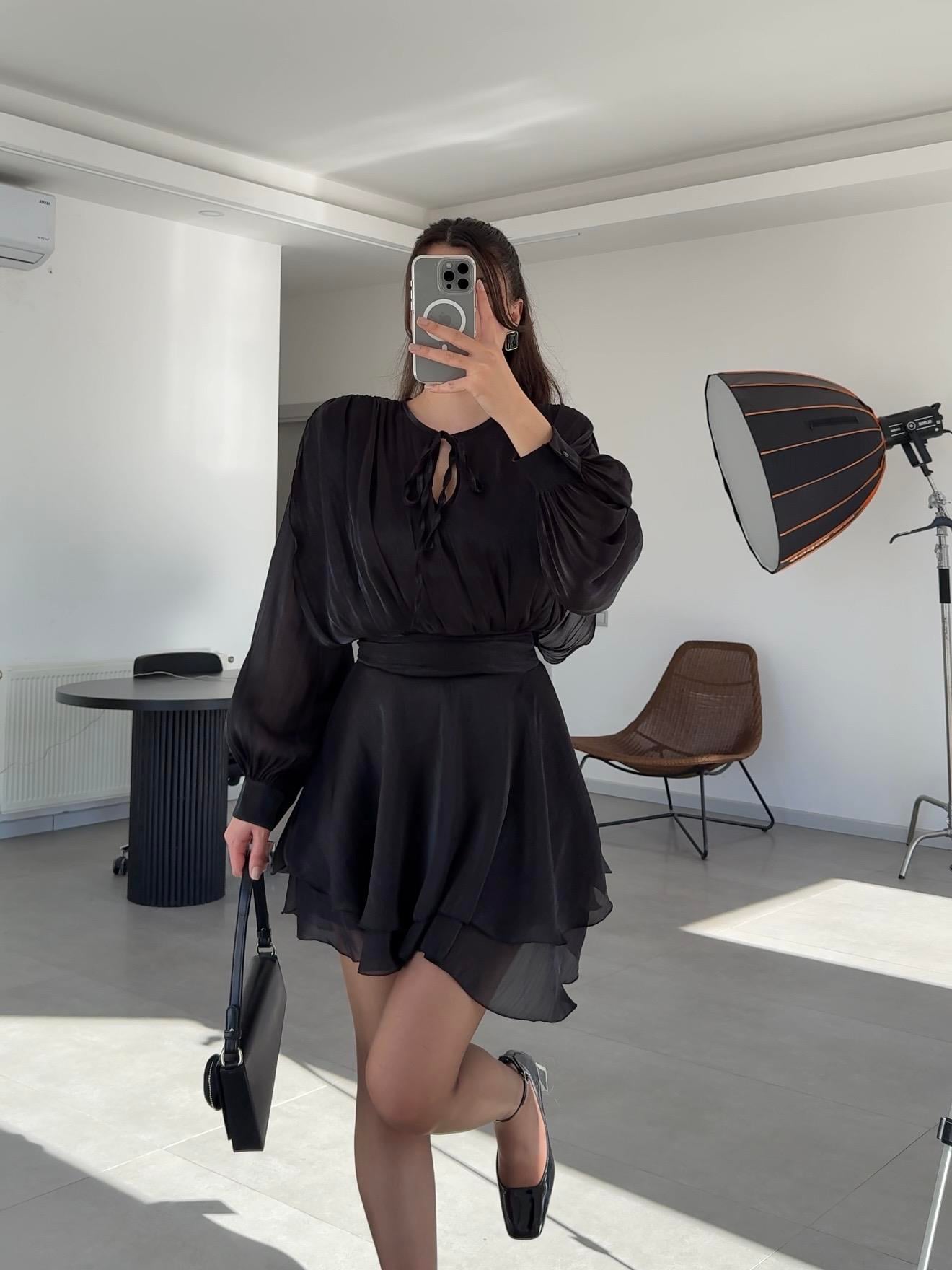Rosa Vatkalı Jakarlı Tül Elbise- Siyah