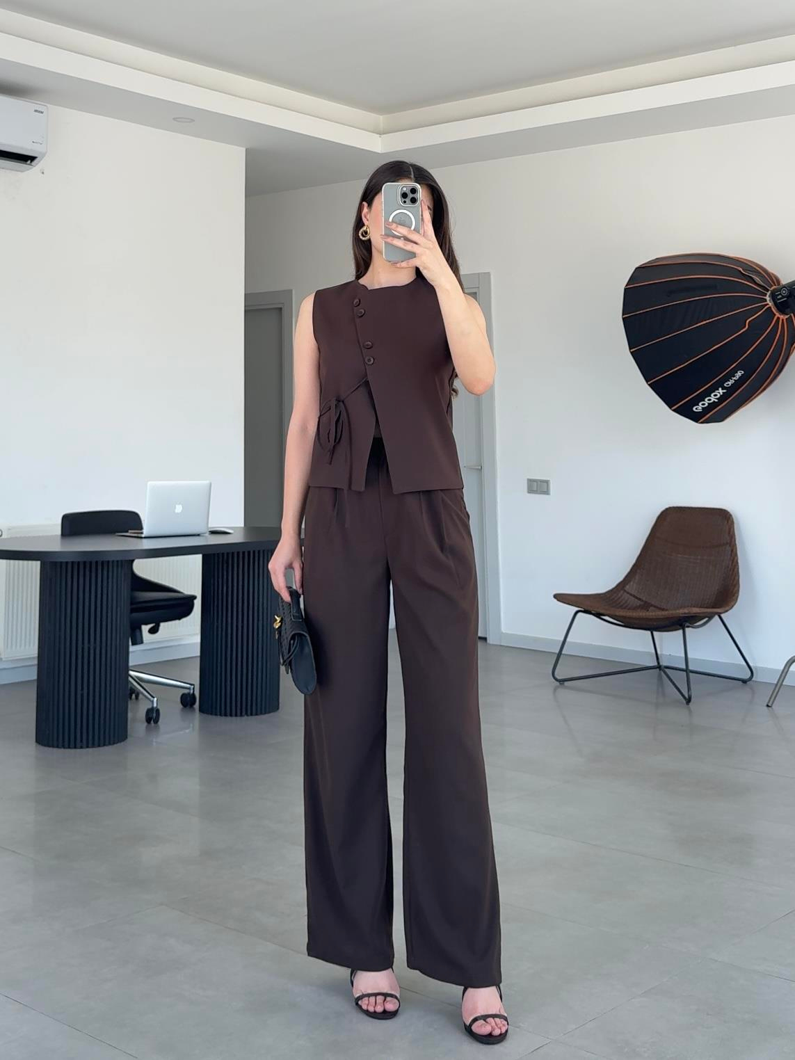 TASARIM YELEK/PANTOLON TAKIM- Kahve
